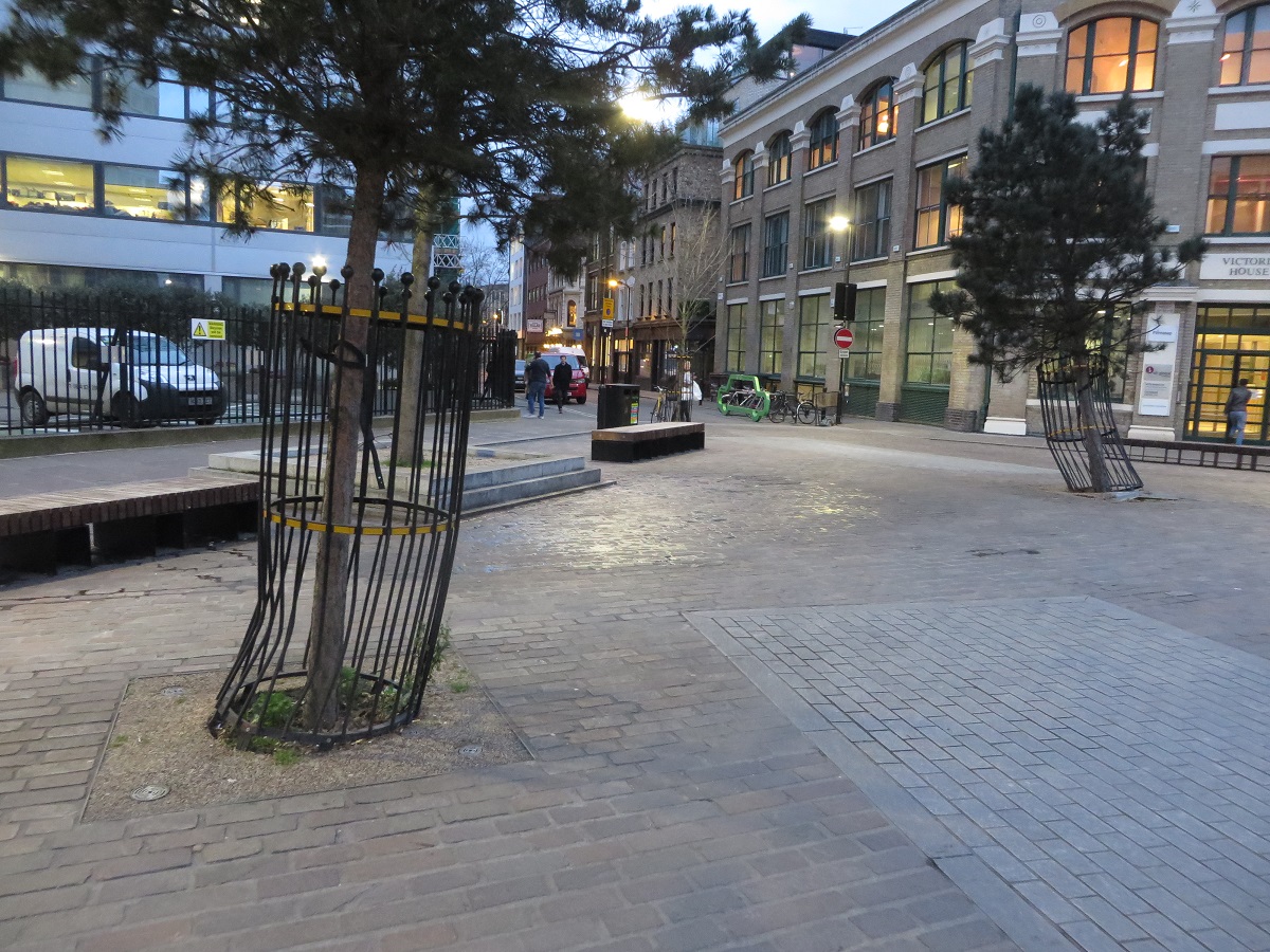 Meanwhile on the approach to the crossing from Tabernacle Square tarmac was used however, despite a promise to removed them in the consultation, the three trees that were there were left in place. In the middle of the cycle track.